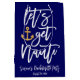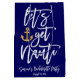 Regale a los invitados en su fiesta de despedida con tema náutico utilizando este diseño de caligrafía moderna blanca personalizada con estilo divertido "Let's Get Nauti" con un patrón de ancla dorada en los lados. Personalice con su nombre y fecha de la fiesta seleccionando "personalizar esta plantilla". Para preguntas o solicitudes sobre este diseño, por favor contáctenos a través del chat; ¡estaríamos encantados de ayudar!