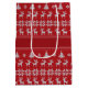 Un árbol de Navidad vintage, copo de nieve y patrón de suéter argyle de reno en rojo alrededor de tu texto personalizado en una bolsa de regalo de vacaciones con un aspecto retro. Personaliza tus regalos de Navidad con estas hermosas bolsas nostálgicas y anticuadas. Perfectas para regalos corporativos de Navidad que se pueden personalizar con el nombre de tu empresa o negocio.