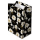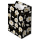 Bolsa De Regalo Mediana Floral blanco y dorado sobre negro