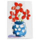 Esta es una pintura acuarela original de flores naranjas extravagantes en un jarrón azul.