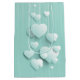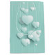 Bolsa De Regalo Mediana Fondo verde claro con corazones blancos 3D