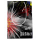 Fuegos artificiales en el cielo negro nocturno con nubes y estrellas para el cumpleaños general.