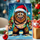 A funny Bigfoot Christmas gift bag with a comic book style pop art sasquatch smiling with a Santa and Christmas lights on.