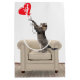Gato de tabby parado en una silla de cuero beige jugando con un globo de corazón rojo por 30 años. Se puede cambiar la edad de cumpleaños.
