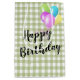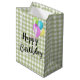 Bolsa De Regalo Mediana Gingham verde y blanco de cumpleaños