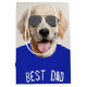 Perro Golden Retriever con camiseta azul y gafas de sol aviador para el Día del Padre de papá o cumpleaños. El texto es editable. Se puede cambiar el fondo.