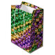Bolso brillante medio del regalo con una imagen festiva de los collares púrpuras, verdes y del oro del carnaval de la gota. Vea el bolso grande a juego del regalo. Vea la colección entera del bolso del regalo del carnaval en la sección ESPECIAL de los favores de fiesta de los TACTOS el |.