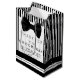 Bolsas de Regalo de los Groomsmen. Gracias a los hombres en su fiesta de bodas con estilo con un regalo de aprecio envuelto en una bolsa de regalo de los Groomsmen. Esta bolsa de papel blanco y negro muestra una imagen de una corbata de arco con las palabras "Gracias a mi Groomsman" en negro con rayas blancas y negras alrededor de la parte trasera y de los lados. Personalizado con el nombre de cada timonel. La bolsa de regalo de muestra se muestra con fondo negro. Personalizar el color de fondo, el color del texto y el color de la fuente. Haga clic en "Personalizar". Para ver más maravillosos padrinos o bodas de damas de honor gracias, por favor visite "La Princesa Hungaricana - Una Boutique" en zazzle.com/hungaricanprincess.¡Enhorabuena!