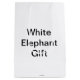¡El regalo perfecto para tu regalo de elefante blanco! Sencillas letras negras sobre un fondo blanco que dice "regalo de elefante blanco"- estilo de los antiguos productos genéricos de los años 80. También puedes personalizar y cambiar los colores, etc. también si lo deseas.
