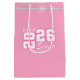 This gift bag is for the Grad in your life, shown in pink with a diamond sparkle accent and a senior class of print.
