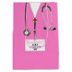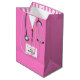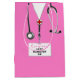 Bolso de regalo creativo para enfermeras con exfoliaciones de hospital rosadas, estetoscopio y grandes felicitaciones. Para personalizar el texto de edición para agregar el nombre de la nota escolar de enfermería.