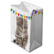 Bolsa De Regalo Mediana Gray Kitten De Cumpleaños En Blanco