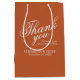 Groovy Naranja Boda Bienvenida Gracias Bolsa De Regalo Media. Bolsas para el favor de la boda para los invitados.Esta elegante bolsa de regalo está decorada con elegante tipografía de escritura. Puede cambiar nombres, texto y añadir etiquetas, así como cintas de satín. Elementos coincidentes disponibles.