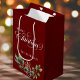 Bolso de regalo de Navidades tradicionales con un guión y decoración para la temporada de vacaciones delante y atrás. Envoltura fácil de tus regalos, sólo agrega una etiqueta. Si tienes varios presentes, esta es la manera perfecta de juntarlos en una elegante y personalizado bolsa de regalo. Esto se verá genial bajo el árbol. Un color de base rojo profundo y una decoración acuática con bayas Holly, vegetación y conos de pino. El diseño de doble cara, el frontal y el trasero son iguales. Disponible en diferentes tamaños. Es opcional tener el apellido en la bolsa de regalo. Fácil de personalizar al nombre de la familia, o borrarlo. Vea los demás productos coincidentes de esta colección para ver un tema cohesivo.