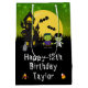 Esta divertida y espeluznante bolsa de regalo puede ser personalizada con un nombre o título, como hija, nieta, sobrina, amiga, etc. Cuenta con bonitos monstruos Frankenstein al lado de una casa embrujada. En el fondo hay una luna llena con murciélagos y un cielo nocturno verde con estrellas. El texto combina fuentes decorativas y serif para un estilo elegante y moderno. Esto es perfecto para Halloween.
