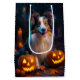 Bolsa De Regalo Mediana Halloween Shetland Sheepdog con calabazas asustada