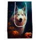Bolsa De Regalo Mediana Halloween Siberian Husky Con Calabazas Asustadas