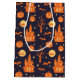 Este patrón de Halloween presenta cosas clásicas y cuentemente espeluznantes en siluetas de naranja y amarillo sobre un fondo negro. Una casa embrujada rodeada por la luna, árboles, murciélagos y calabazas. Bolsa de regalo divertida y festiva para las sorpresas de Halloween! ¡Mira mi tienda para más buenas golosinas de Halloween!