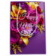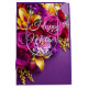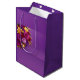 A vibrant medium‑sized Mother’s Day gift bag wrapped in lush purple roses, sunny lilies, and elegant white script. The rich purple background and bright floral artwork create a warm, celebratory presentation—perfect for gifting candles, mugs, small treats, or heartfelt surprises for Mom.