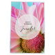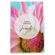 Bolsa de regalo con una flor rosa y blanca vibrante. La fotografía de cerca de esta flor encantadora realmente llama tu atención. Un círculo semitransparente con tu texto personalizado dentro. Los lados tienen una imagen de acuarela azul.