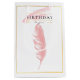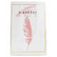 Bonito y elegante marco dorado con un dibujo a lápiz de plumas rosadas y pinturas rosas con un feliz deseo de cumpleaños. Diseño artístico lujoso y sencillo de cumpleaños. Personalice cambiando el texto o el personalizar para añadir su propio toque.