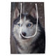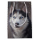 Esta pintura digital representa a un Husky Siberiano parado en la nieve, su piel brillando con helados resaltados mientras el paisaje invernal se extiende infinitamente detrás. Los ojos expresivos del perro captan la atención del espectador.