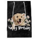 Bolsa De Regalo Mediana Jugador Dorado De Cumpleaños En Cuero Negro