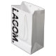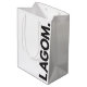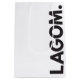 Disponible en muchos productos, esta bolsa de regalo muestra la palabra LAGOM. Lagom (pronunciado [lɑ̀・om]) es una palabra sueca que significa "justo la cantidad correcta". La lagom puede aplicarse a todas las situaciones, desde los alimentos y bebidas hasta los derechos de autor y las emisiones de dióxido.