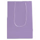 This lovely lilac purple bachelorette party gift bag features classic white script for a bride who is going to have an upscale event with her bridesmaids. Chic, minimalist pastel purple bridesmaid gift bags.