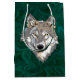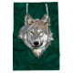 Hermosa cabeza de lobo sobre un fondo verde para estas bolsas de regalo de personalizable.