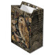 Bolsa De Regalo Mediana Lovely Owl in the Flowers Garden ,Gold Checkered ,