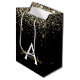 Bolsa De Regalo Mediana Lujo Dorado Negro Brillo Destello Monograma