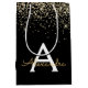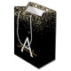 Bolsa de regalo elegante dorada y negra con brillo falso. Esta bolsa de regalo se puede personalizar para incluir tu inicial y nombre y es ideal para cumpleaños, despedidas de soltera, bodas, aniversarios, despedidas de soltera o regalos para baby shower.
