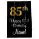 Este elegante, elegante y lujoso diseño de bolsos de regalo con temática de cumpleaños presenta un gran número ordinal "85th" que tiene un aspecto de imitación/falso dorado, además del mensaje de bienvenida de cumpleaños "Feliz cumpleaños número 85", y un nombre de destinatario personalizado con un tipo de letra estilo script. El fondo es negro de color. Una bolsa de regalo con temas de cumpleaños como esta puede ser usada cuando se da un regalo o regalo para la celebración de los ochenta y cinco años de alguien. [~Z0000514]