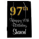 Este elegante, lujoso y elegante diseño de bolsos de regalo con temática de cumpleaños presenta un gran número ordinal "97" que tiene un aspecto falso/imitación de oro, además del mensaje de bienvenida de cumpleaños "Feliz cumpleaños 97", y un nombre de destinatario personalizado con un tipo de letra estilo script. El fondo es negro de color. Una bolsa de regalo como esta puede ser usada cuando se da un regalo o regalo en honor al cumpleaños 97 de alguien. [~Z0000514]