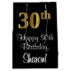 Este elegante, lujoso y sofisticado diseño de bolsos de regalo con temática de cumpleaños cuenta con un gran número ordinal "30" que tiene un aspecto imitación/falso de inspiración dorada, además del mensaje de bienvenida de cumpleaños "Feliz cumpleaños número 30", y un nombre de destinatario de personalizable con un tipo de letra estilo script. También tiene un fondo de color negro. Una bolsa de regalo como esta podría ser una manera divertida de envolver un regalo de cumpleaños o un regalo para alguien que esté celebrando su trigésimo cumpleaños. [~Z0000514]