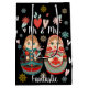 Nombres de personalizables o: Señor y señora" y apellido o su mensaje personal, y una pareja de Matryoshka en azul acuático, verde azulado, rojo sobre negro, está en azul y ella está de color rosado con flores de corazón y copos de nieve.