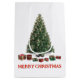 Merry Christmas text can be customized by you. Christmas tree (design 1) with decorations and gifts at the bottom of it.