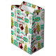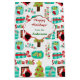 Los perros del dibujo animado, una casa de perro, un árbol del día de fiesta, y un regalo brillantemente envuelto hacen un modelo lindo en este bolso del regalo del navidad. Además, hay el texto colorido que dice el "Navi-Perro de Feliz", "nos tejido usted las Felices Navidad", y las "patas de Santa". Personalice la bandera blanca alineada en rojo en el frente. ¡Diversión del día de fiesta! el arte del *Clip usado en este diseño es con derechos de autor por Encore Software, Inc., que permite uso a sus licenciadores. Todos los derechos reservados.