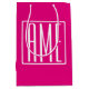 Bolsa De Regalo Mediana Monograma inicial | Blanco Sobre Rosa Caliente