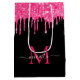 Bolsa De Regalo Mediana Monograma Metálico Purpurina de goteo rosado calie