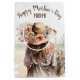 Pintura acuarela de una mujer con un gorra de playa mirando el agua del océano para el Día de la Madre. El texto es editable.