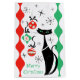 Diseño inspirado a mediados de siglo con un toque retro con gatos negros de estilo atómico, Navidades verdes y rojos baubles y estrellas negras sobre un fondo con estampado rojo, verde y blanco. Un diseño de personalizable para que puedas personalizar con tu propio texto, imágenes e ideas. Imagen original de arte digital creada por Jess Perry en QuirkyChic Retro.