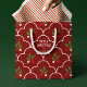 Dé un regalo realmente personalizado a esta temporada de Navidades con una bolsa de regalo amable y personalizada. Personalizar el saludo y el nombre del texto y omita las etiquetas de regalo ya que la información ya está en este artículo de temporada. Un patrón de elegantes arcos rojos de vieiras se acentúa con brotes ilustrados de hojas y bayas huecas y una flor blanca cremosa sobre un fondo de rojo intenso y burdeos.