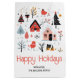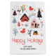 Navidades de la bolsa de regalo de vacaciones estilo arte folclórico escandinavo de paisaje de invierno. Presenta un paisaje invernal con casas, árboles y animales y el texto "Felices Fiestas".