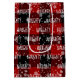 Texto blanco NOCTURNO con copos de nieve sobre fondo rojo y negro de búfalo trenzado.