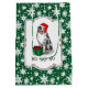Navidades Santa Claus Pastor Australiano. El gracioso perro personalizado australiano con un sombrero de Papá Noel y un regalo de Navidad. ¡HO HO HO! Derechos reservados © Angi Laframboise. Navidades de raza de perro rindiendo regalos para los amantes del perro.