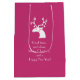 Bolsa De Regalo Mediana Navidades rosados Mensaje personalizado de reno bl
