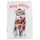 Bolsa De Regalo Mediana Navidades Siberian Husky En Los Copos De Nieve