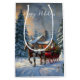 Santa conduciendo un trineo de un caballo para entregar regalos de Navidad en un pequeño pueblo